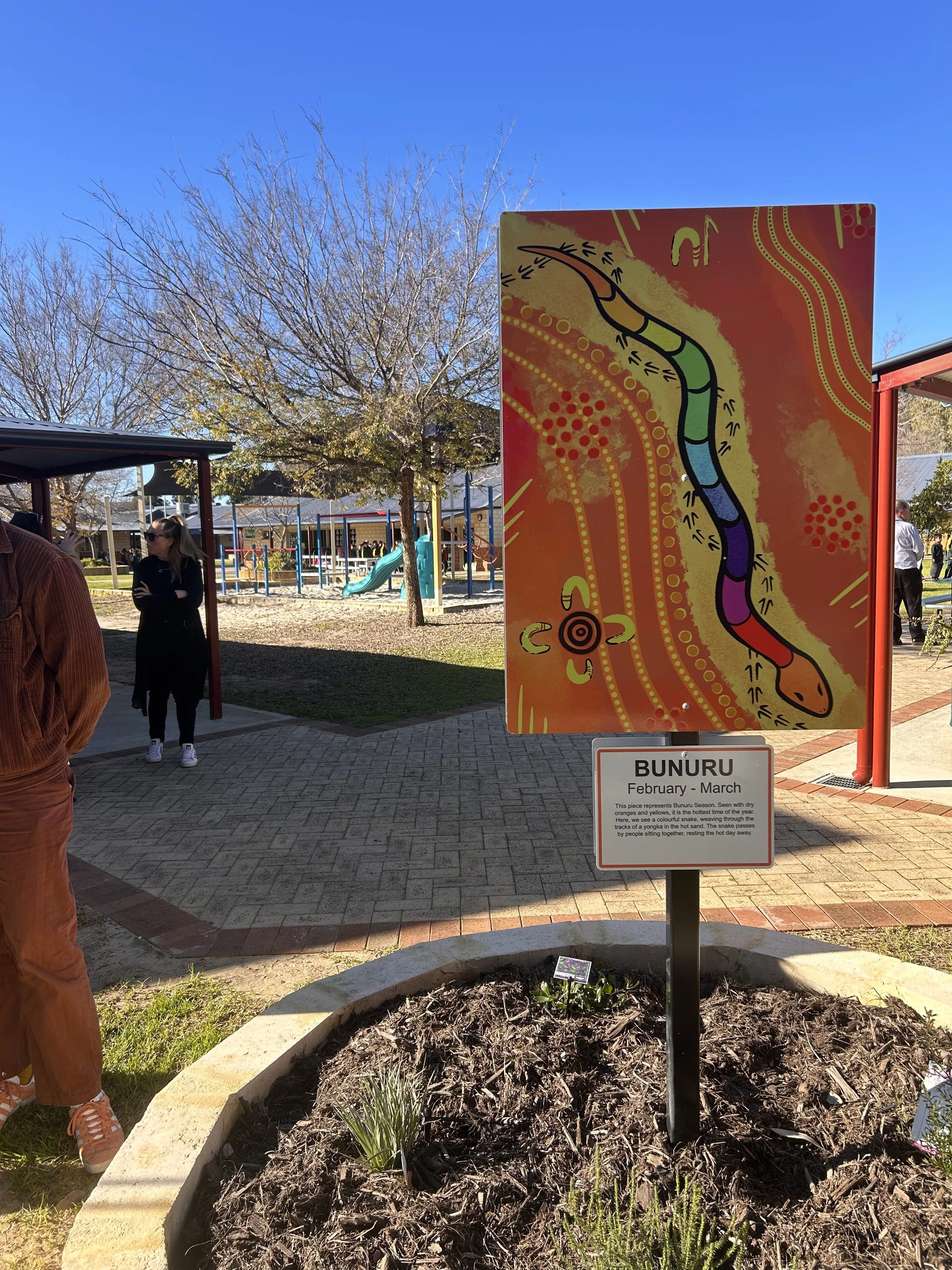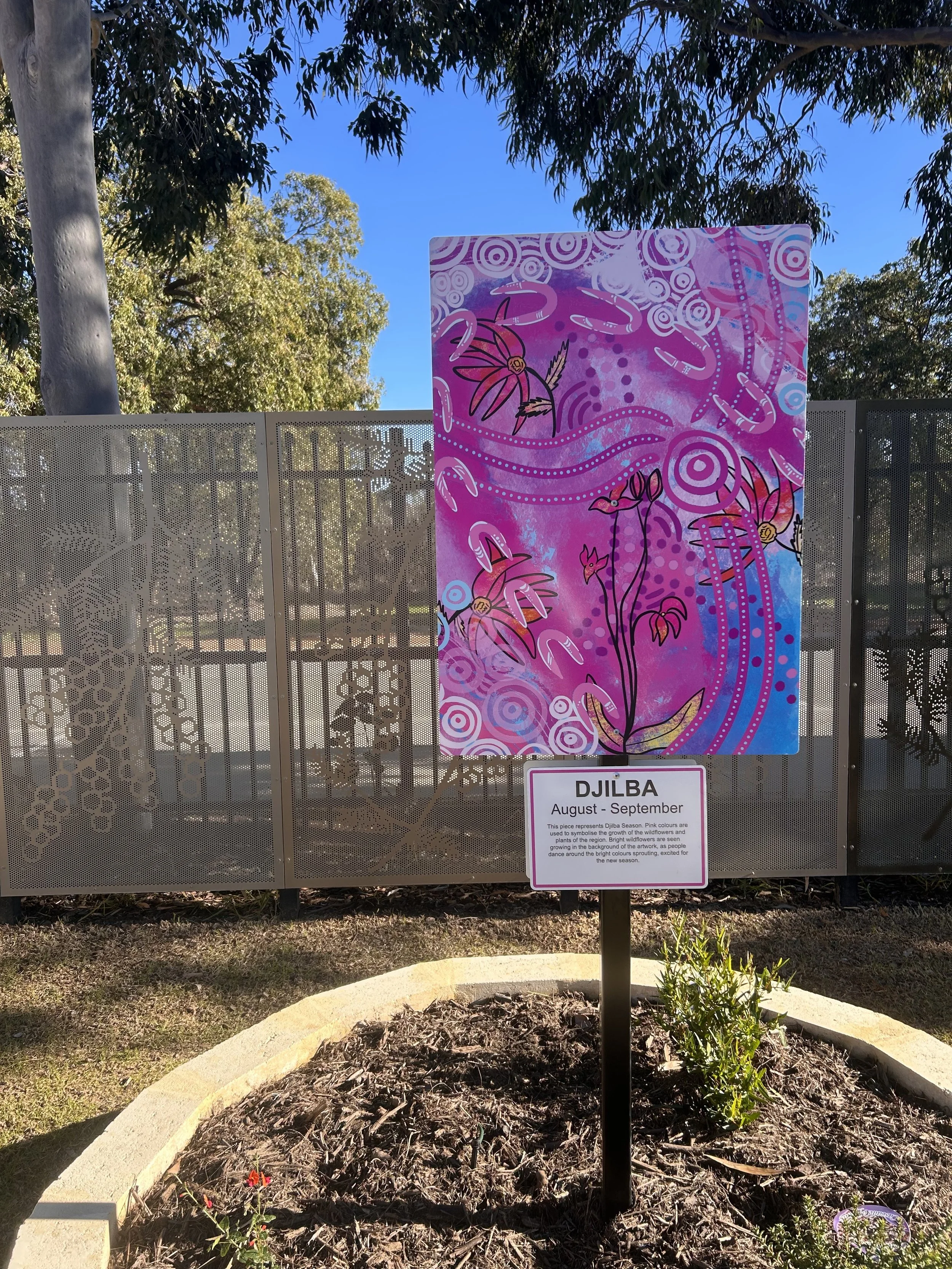 These artworks are displayed in the new Indigenous garden at Wattle Grove Primary School. The artworks are my interpretation of the six Noongar Seasons and are in no way accurate depictions of them.