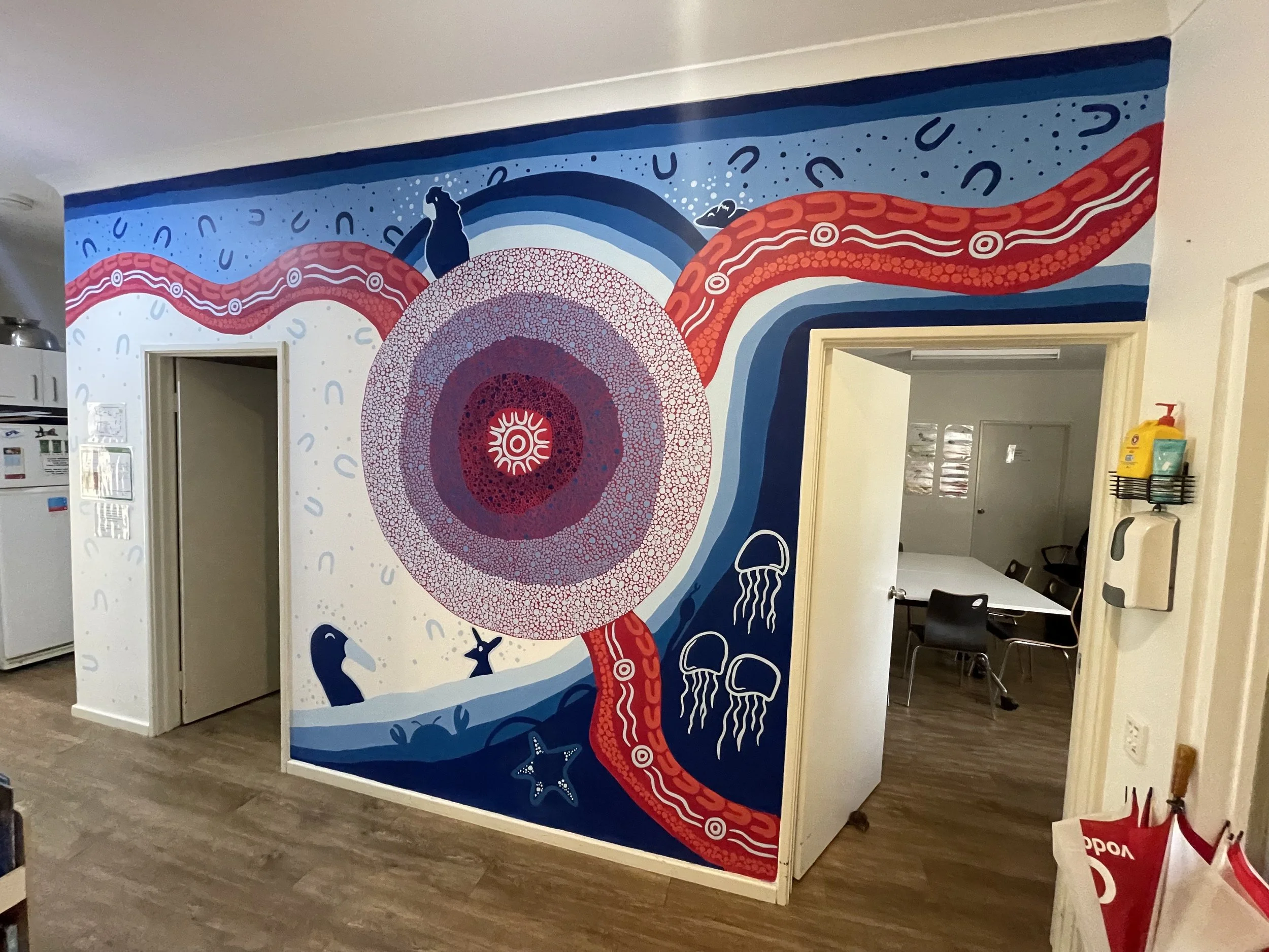 These murals are located within the women’s refuges that showcases the story of the women that come through the refuge, their resilience and strength as they go through their journey, interacting with the services that Starick provides.
